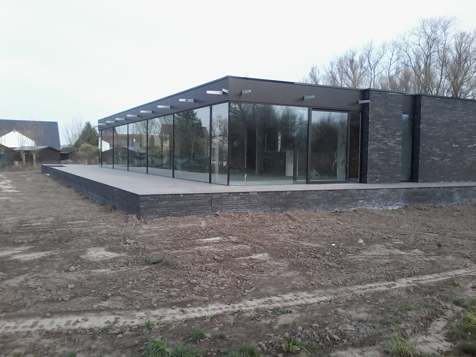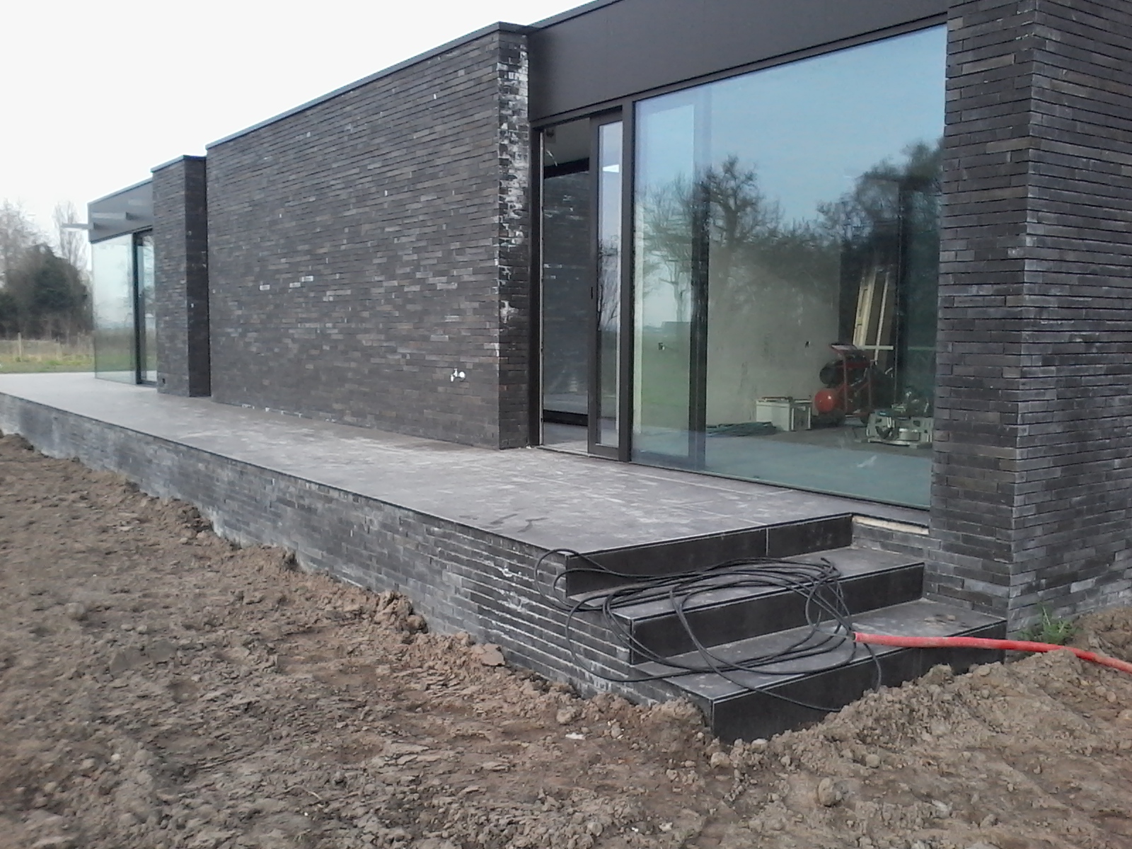 Voor deze strakke, stijlvolle villa/bungalow werd Gedan aangesproken door de bouwheer voor het uitvoeren van de ruwbouwwerken. De gevelstenen werden gelijmd niet gemetst. Eigen materieel en ervaren mensen leidden tot dit unieke resultaat. Alle funderingswerken, rioleringswerken, betonwerken en verlijming van het parament werden door Gedan zelf verzorgd. Hieronder kan u een kijkje nemen naar de verschillende stadia van het bouwproces. We begonnen met het uitgraven van de fundering. Eenmaal de fundering gegoten was konden we starten met ruwbouw. De afwerk werd helaas niet door ons verzorgd maar u kunt toch een kijkje nemen naar het eindresultaat, prachtig, niet?
